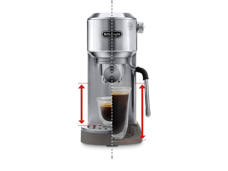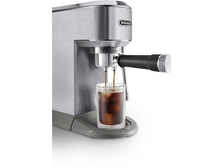 Grazie alla tecnologia Cold Extraction puoi preparare il cold brew in pochi minuti. Schiuma da professionista: la potente lancia vapore My LatteArt crea la microschiuma ideale per autentiche creazioni a base di latte. Vivi un'esperienza interattiva con pulsanti touch e icone colorate che ti semplificano la selezione delle ricette. Con il suo design distintivo, Dedica è la scelta perfetta per gustare cold brew ed espresso a casa. Semplice e intuitivo da usare, è la scelta perfetta per gli amanti del caffè. L'interfaccia utente rivista è ora più grande, posizionata nella parte superiore e dotata di icone touch colorate per una maggiore chiarezza. Il suo aspetto moderno e accattivante lo distingue dai modelli precedenti, sia online che in negozio.